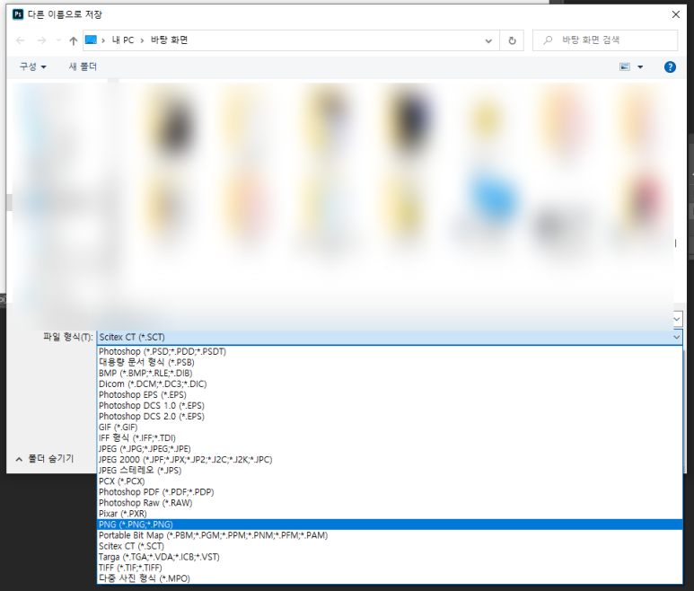 포토샵을 사용할 때 png 확장명으로 저장이 안 될 때 해결 방법입니다.