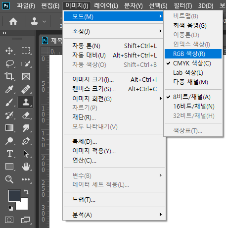이미지(image) > 모드(Mode) > RGB 색상(RGB Color)