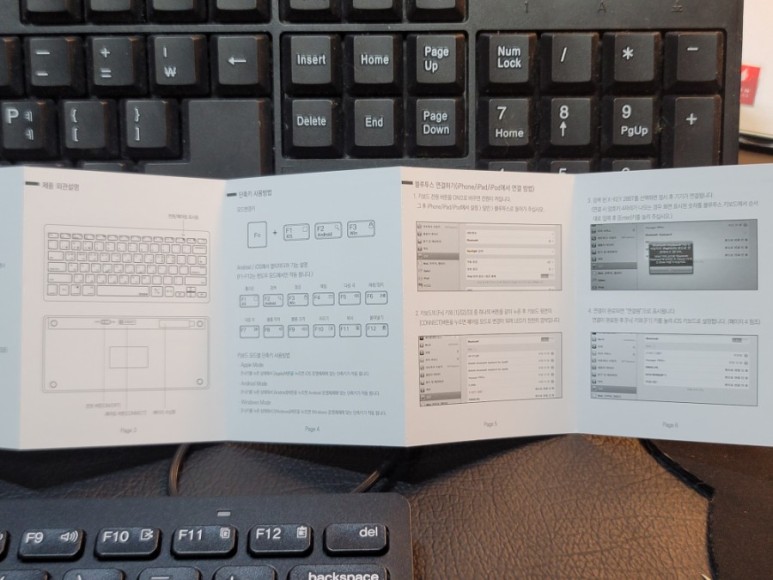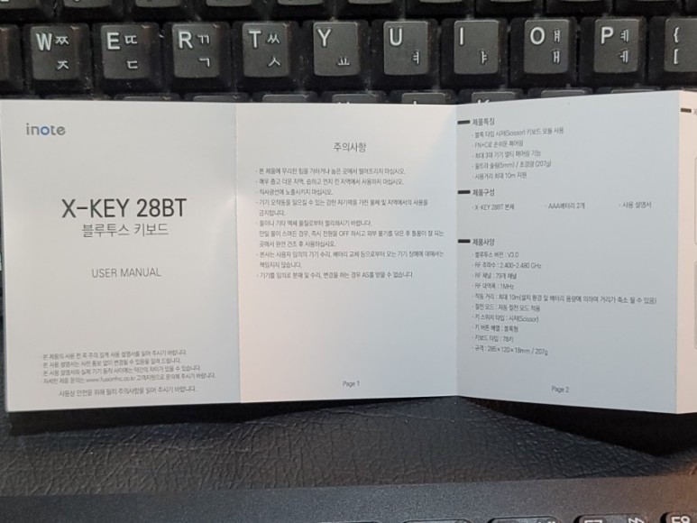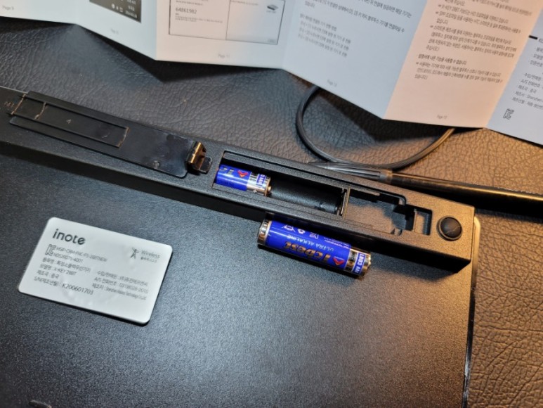 개봉해보면 키보드, 제품 설명서, 건전지 2개가 있습니다.