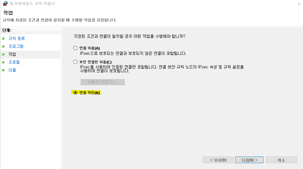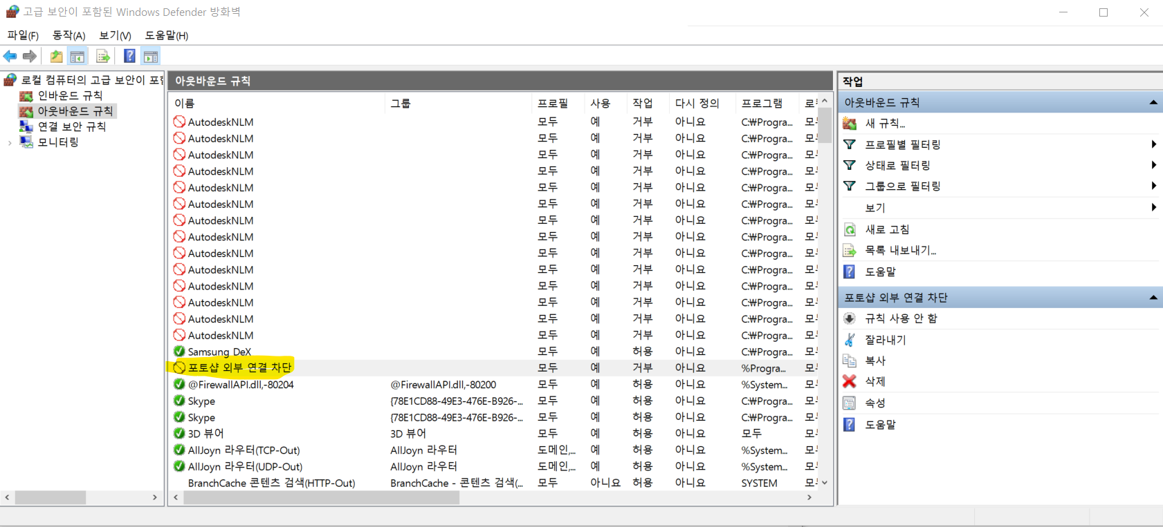왼쪽 항목에서 아웃바운드 규칙을 클릭해주세요.