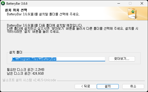 설치가 완료되면 시작줄 왼쪽 하단에 배터리 하단에 퍼센트와 충전중이면 충전 완료 예상 시간이 뜹니다 :)
