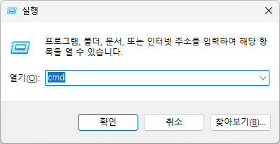 cmd을 입력하고 확인을 눌러주세요.