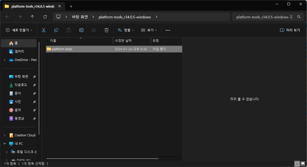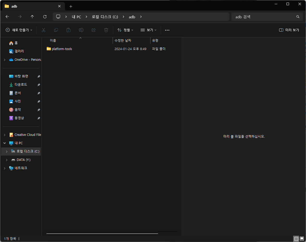 받아서 압축을 풀면. platform-tools 폴더가 나옵니다.