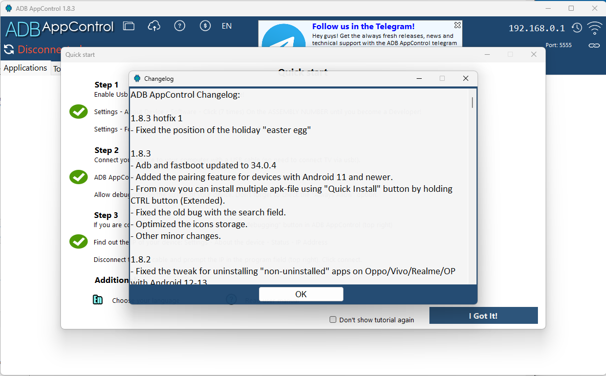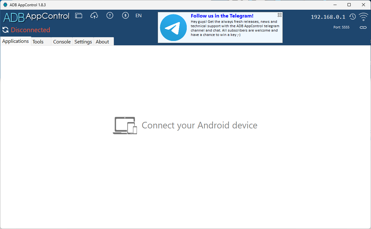 More features Change screen resolution, hide annoying icons in the status bar, take screenshots and remotely control your device. And if you haven't already forgotten about the command line, there's a handy console for you. ADB AppControl has many features