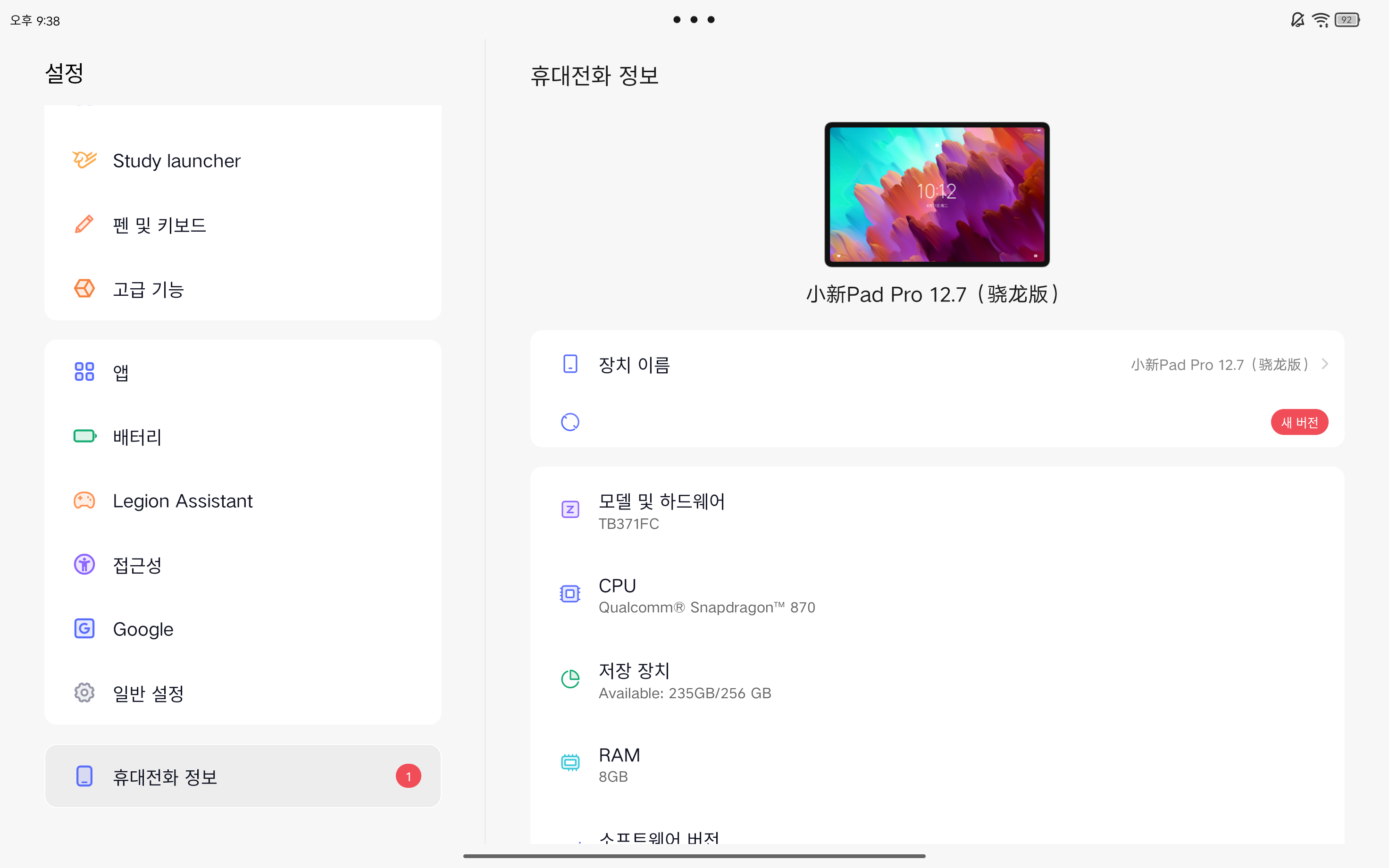 샤오신 패드 프로 12.7 초기 설정(버전확인), 개발자 모드 활성화 방법