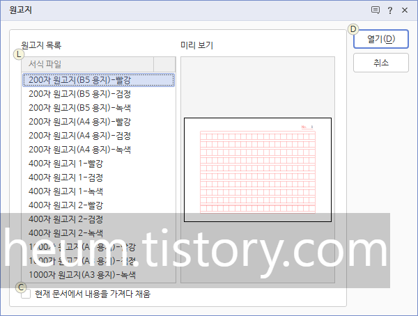 이제는 한글 자체적으로도 원고지 모드가 지원 한다고 합니다.