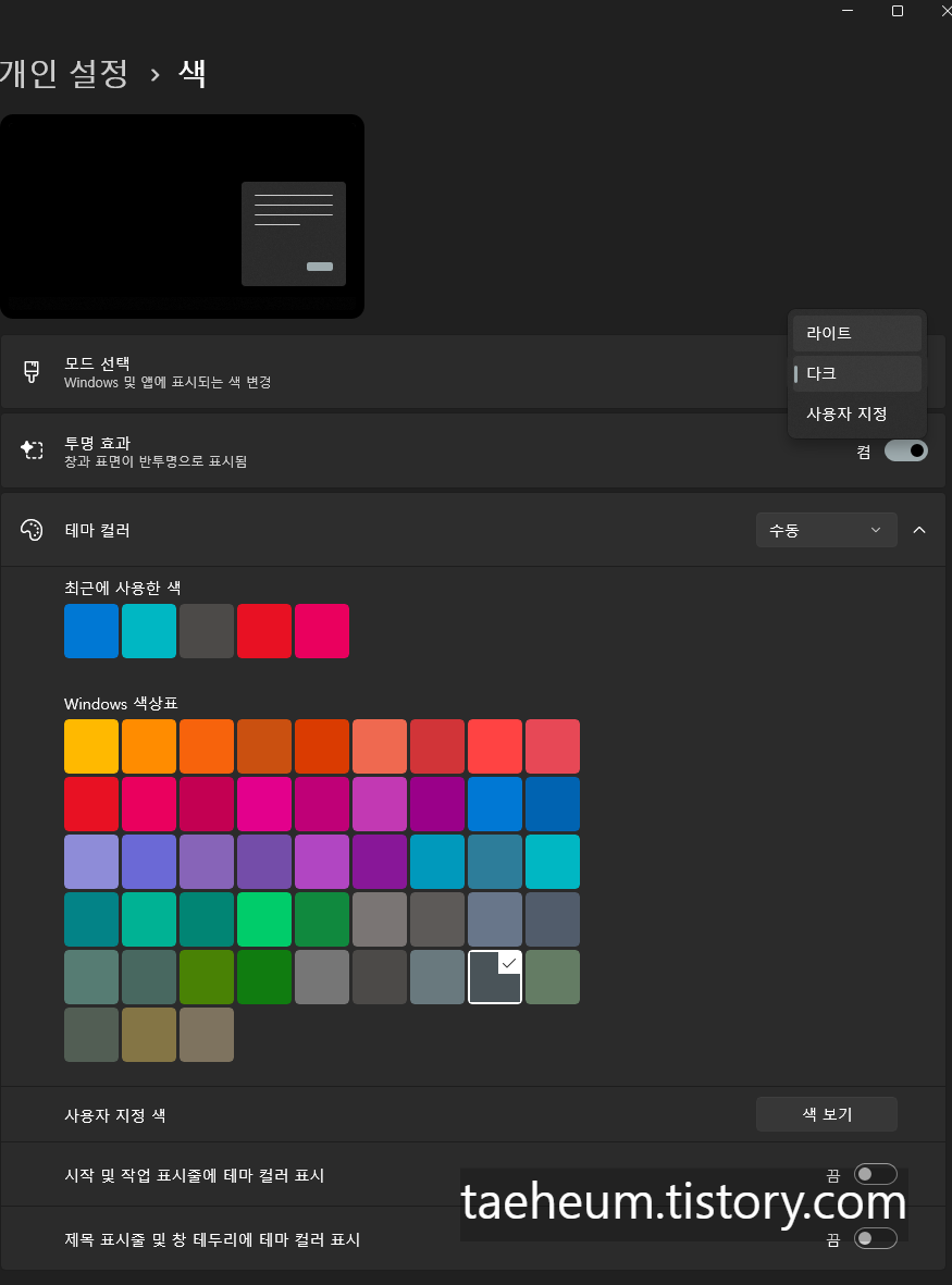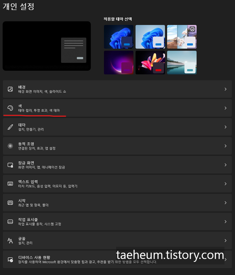 윈도우 10, 11 다크 모드, 어두운 테마 설정하는 방법