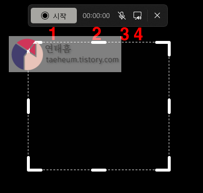 1번은 캡처를 시작할 때 쓰는 버튼입니다. 클릭하시면 바로 캡처할 수 있습니다.