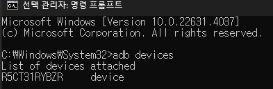 adb devices를 입력해서 기기 연결을 확인해 주세요.