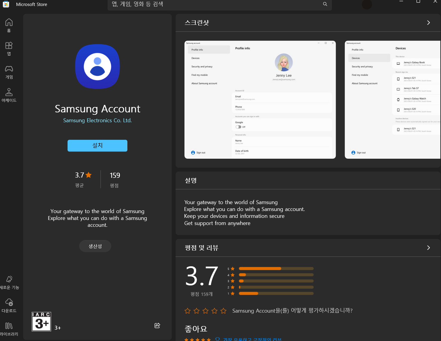삼성 노트에 로그인을 하기 위해서는 Samsung Account 앱을 다운로드하여 줘야 됩니다.