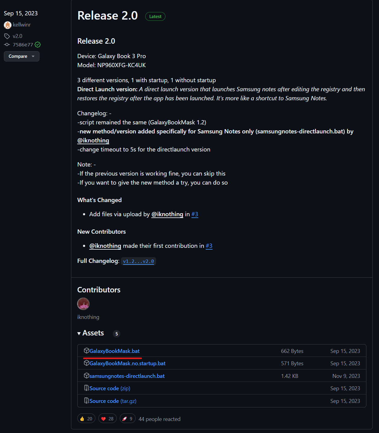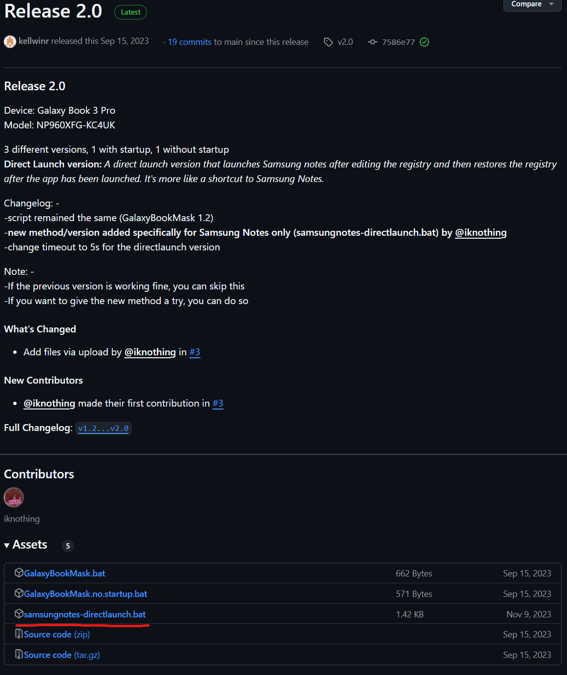 Release 2.0 Device: Galaxy Book 3 Pro Model: NP960XFG-KC4UK 3 different versions, 1 with startup, 1 without startup Direct Launch version: A direct launch version that launches Samsung notes after ...