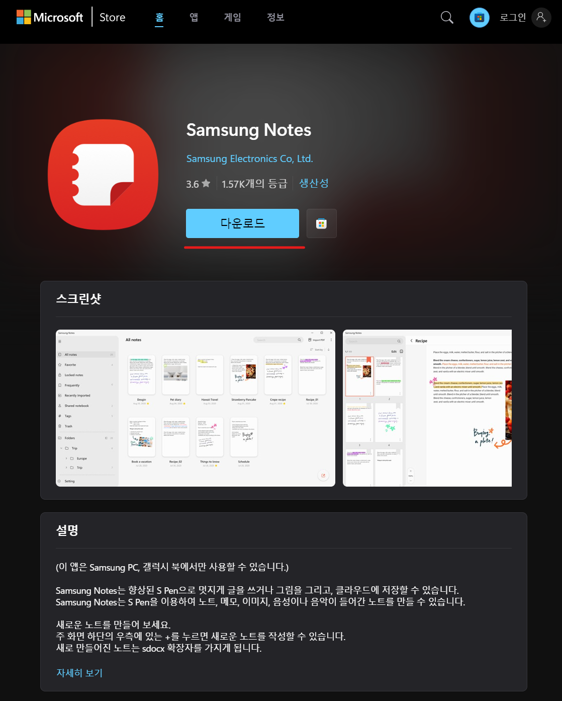 삼성노트 다운로드하기