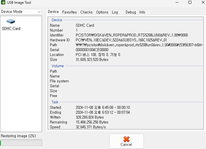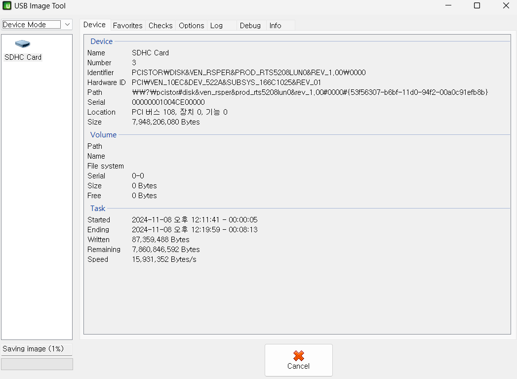 완료되묜 IMG 파일로 백업 파일이 생깁니다.