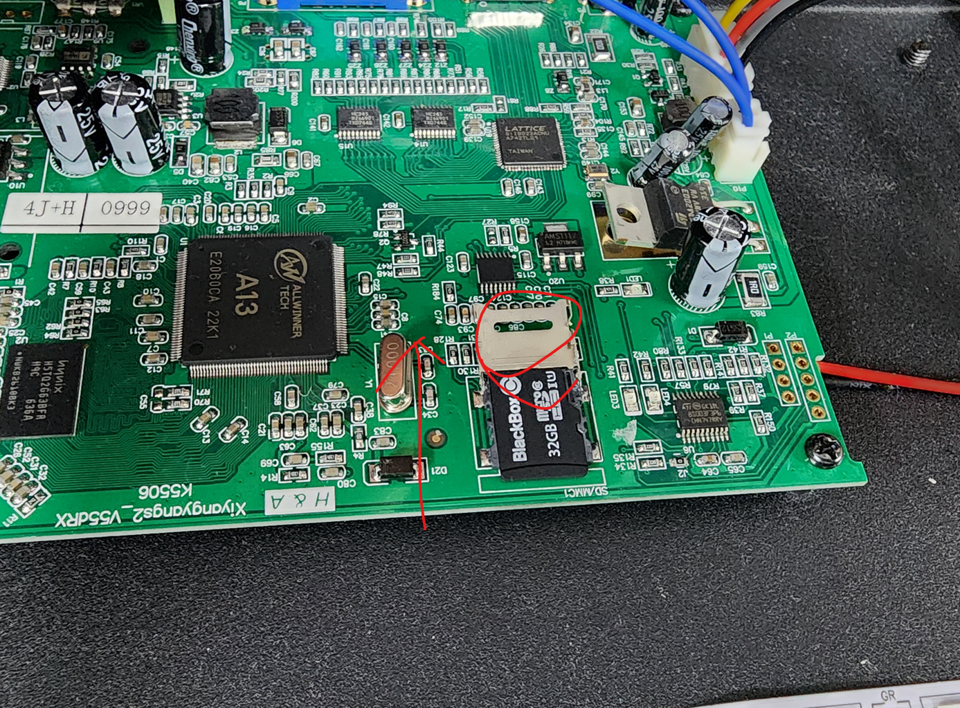 보드를 보시면 아래쪽에 SD 메모리 들어가는 것이 있습니다. 눌러서 빼는 방식이 아닌