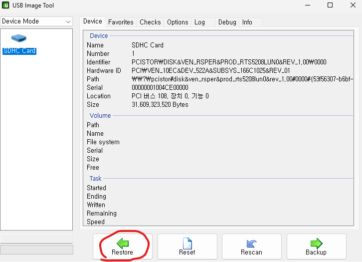 USB Image Tool 1.90 툴을 이용해서 백업 받을수있습니다.