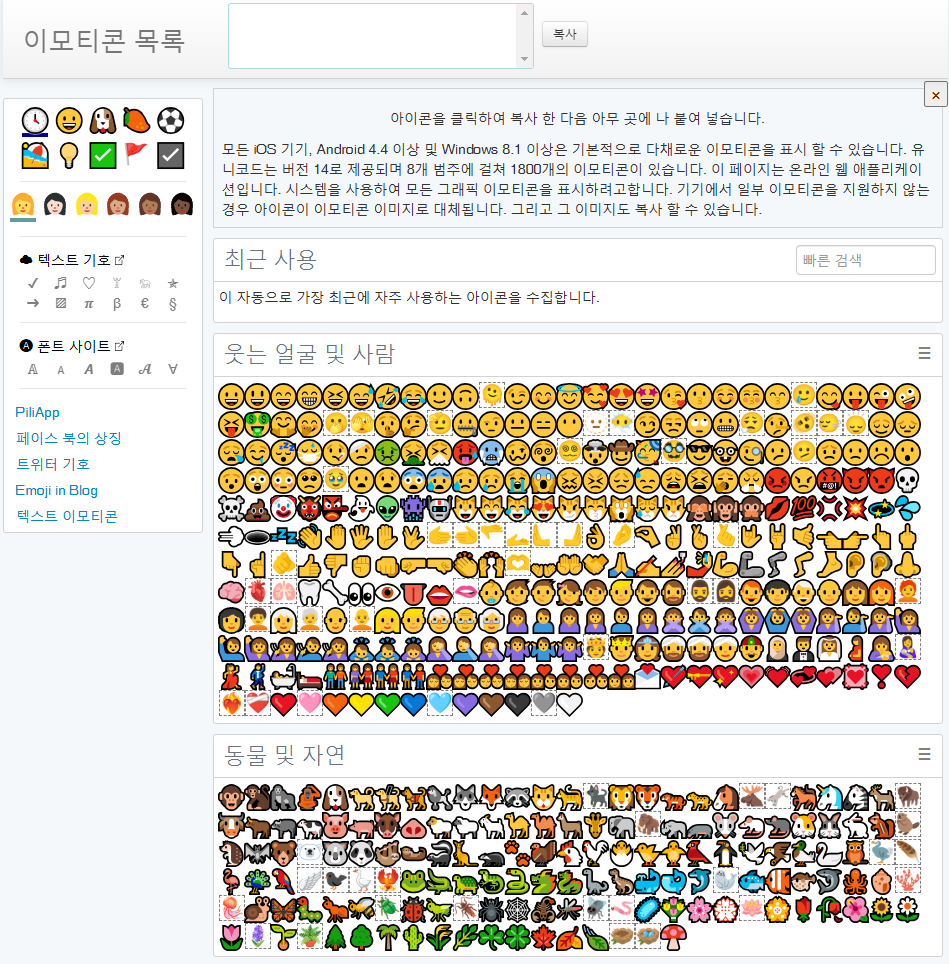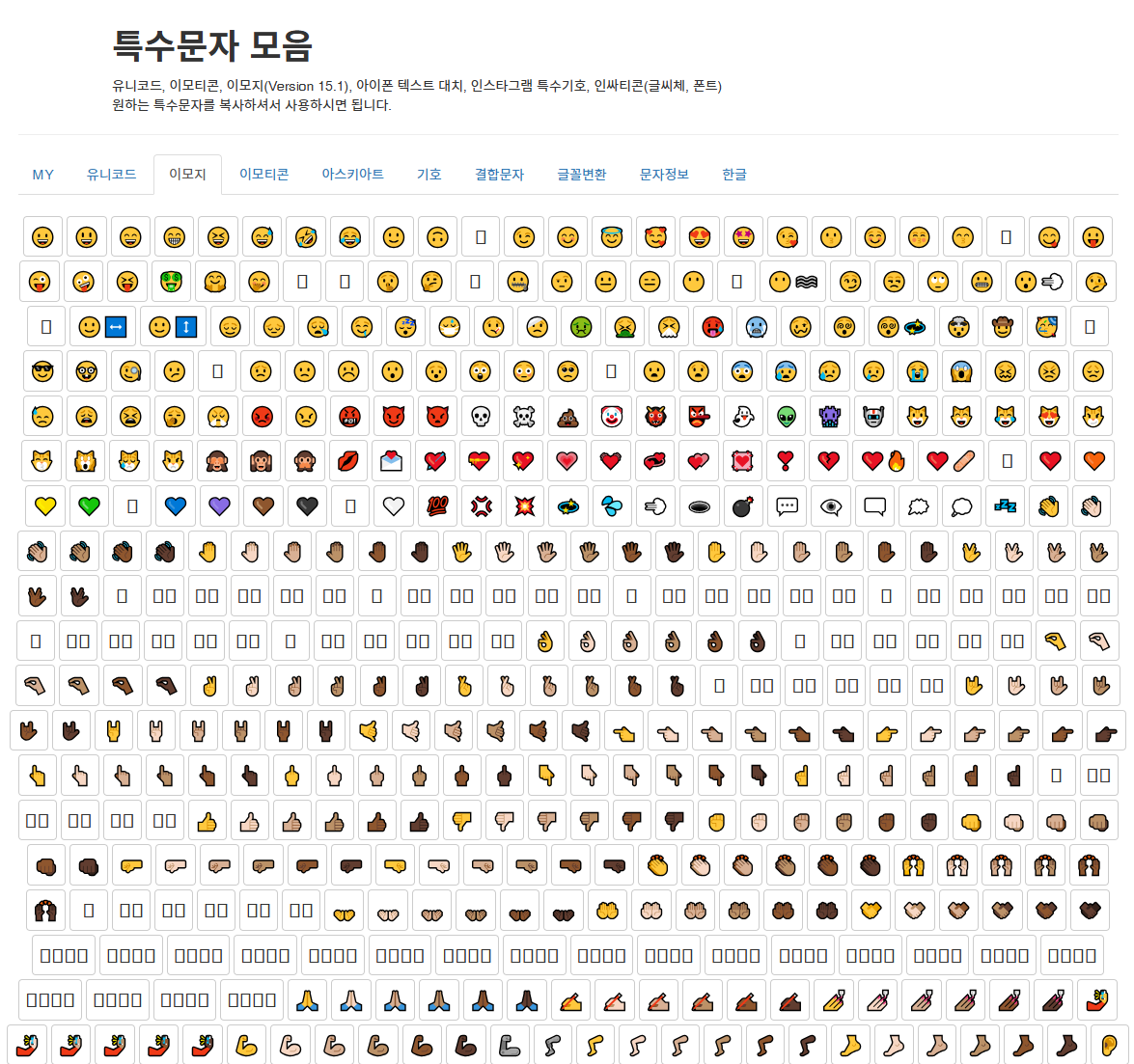 쭉 있어서 한 번에 보기 편한 이모지 사이트