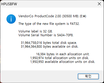 32G 미만 USB를 준비한 후에 위에 첨부 파일을 받아주세요.