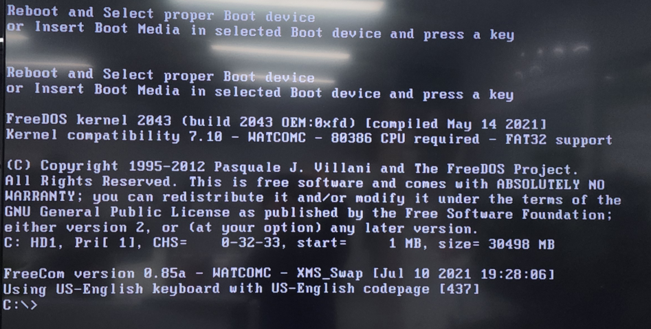 위에화 비슷하게 C:\> 입력창이 뜬다면 정상대로 USB 부팅이 되신 것입니다.