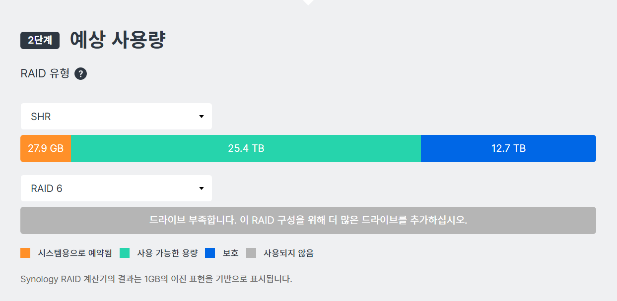 레이드 구성에 대해서 알아봤으면 이제 예상 용량에 대해서 알아보겠습니다.