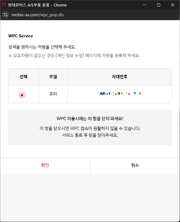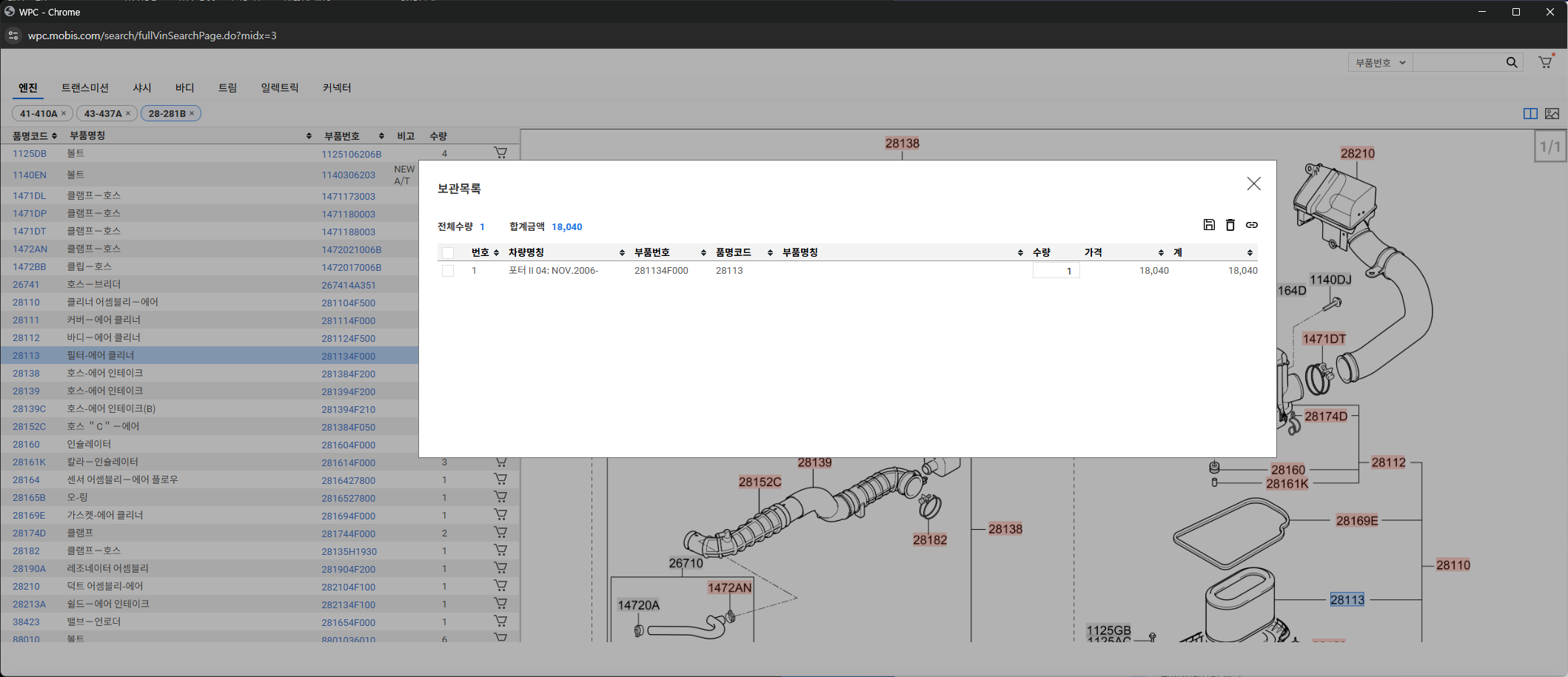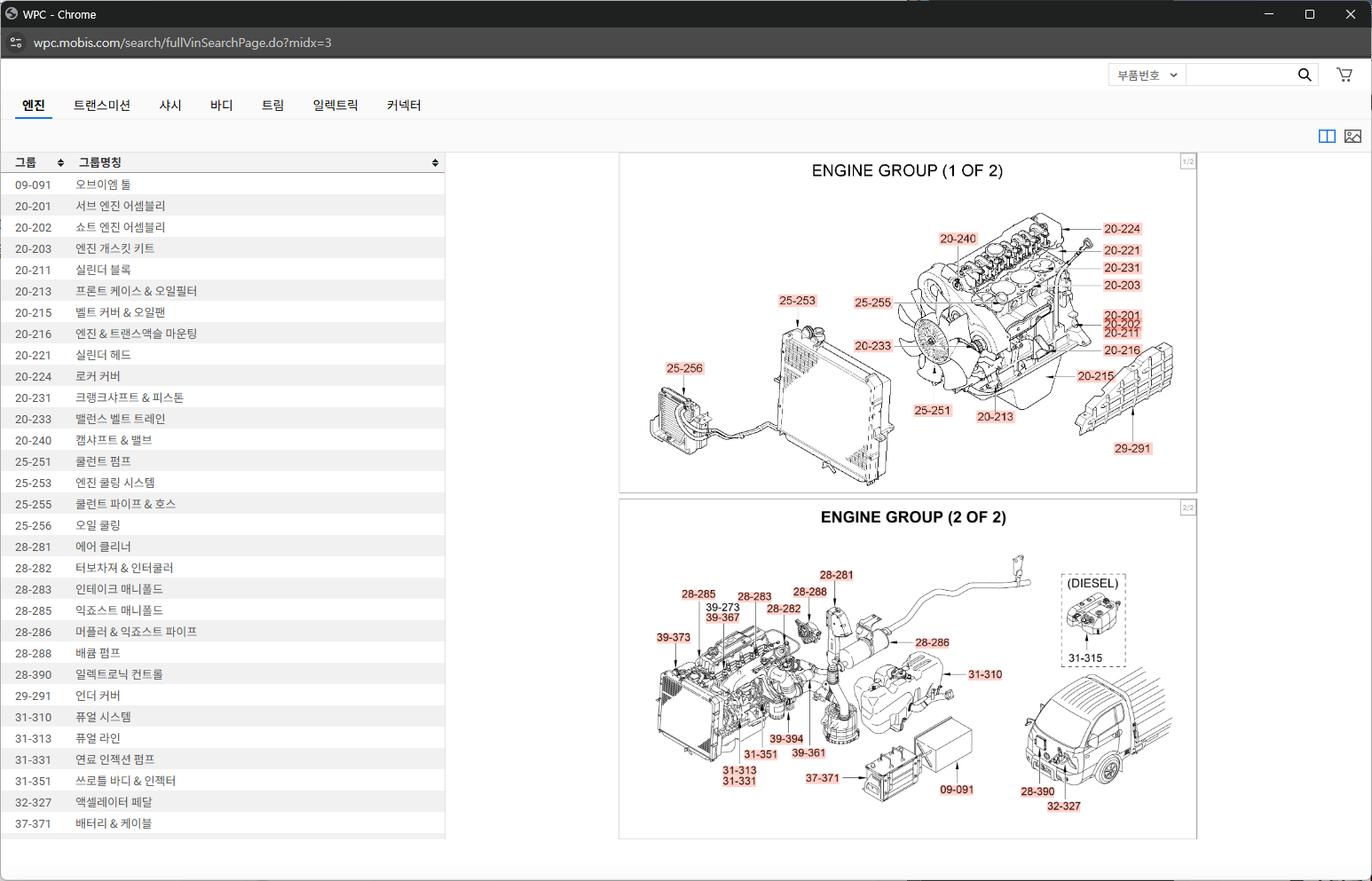 해당 차량의 모든 부품번호를 알 수 있습니다.
