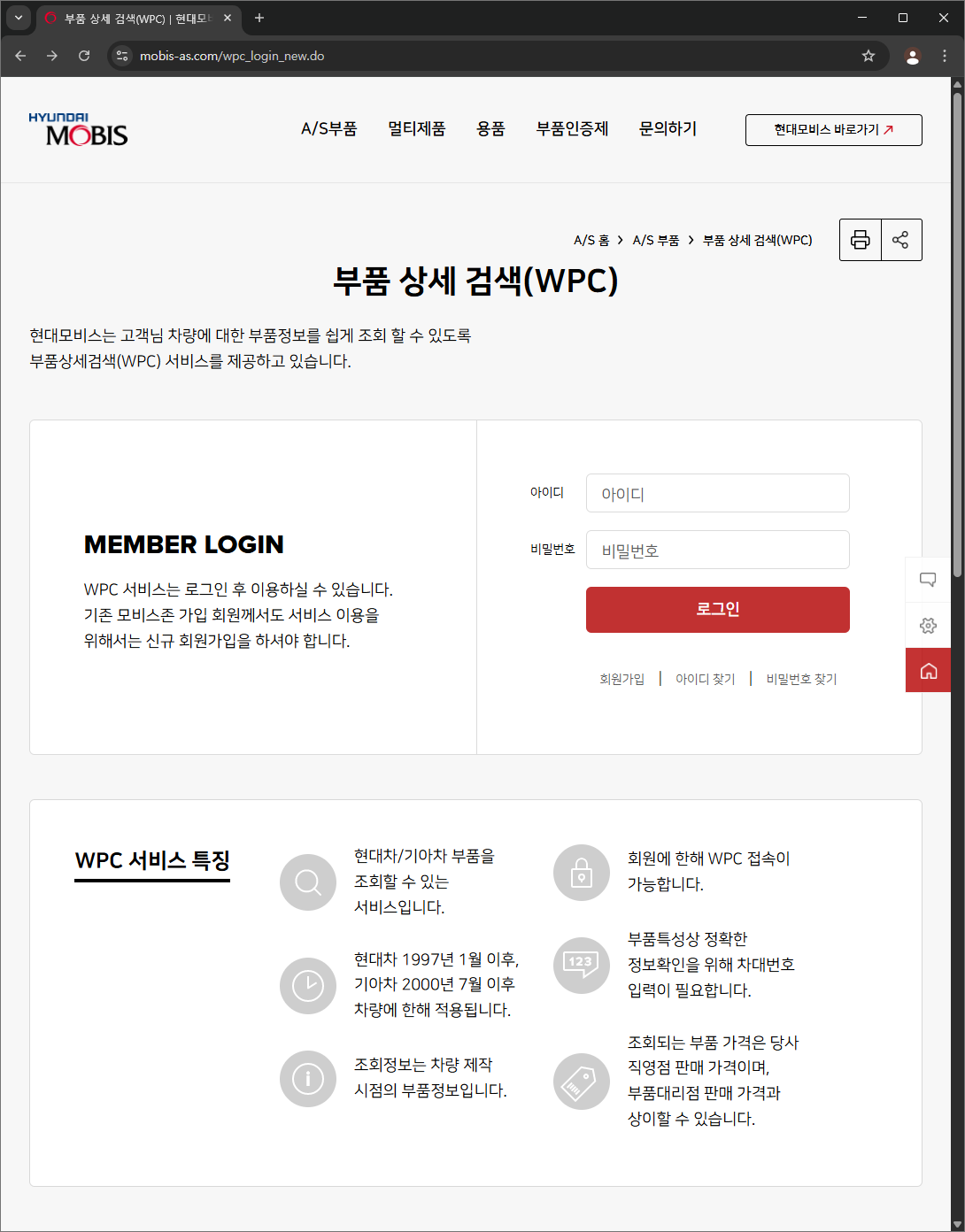 현대 자동차 부품 및 매뉴얼은 홈페이지에서 확인이 가능합니다.