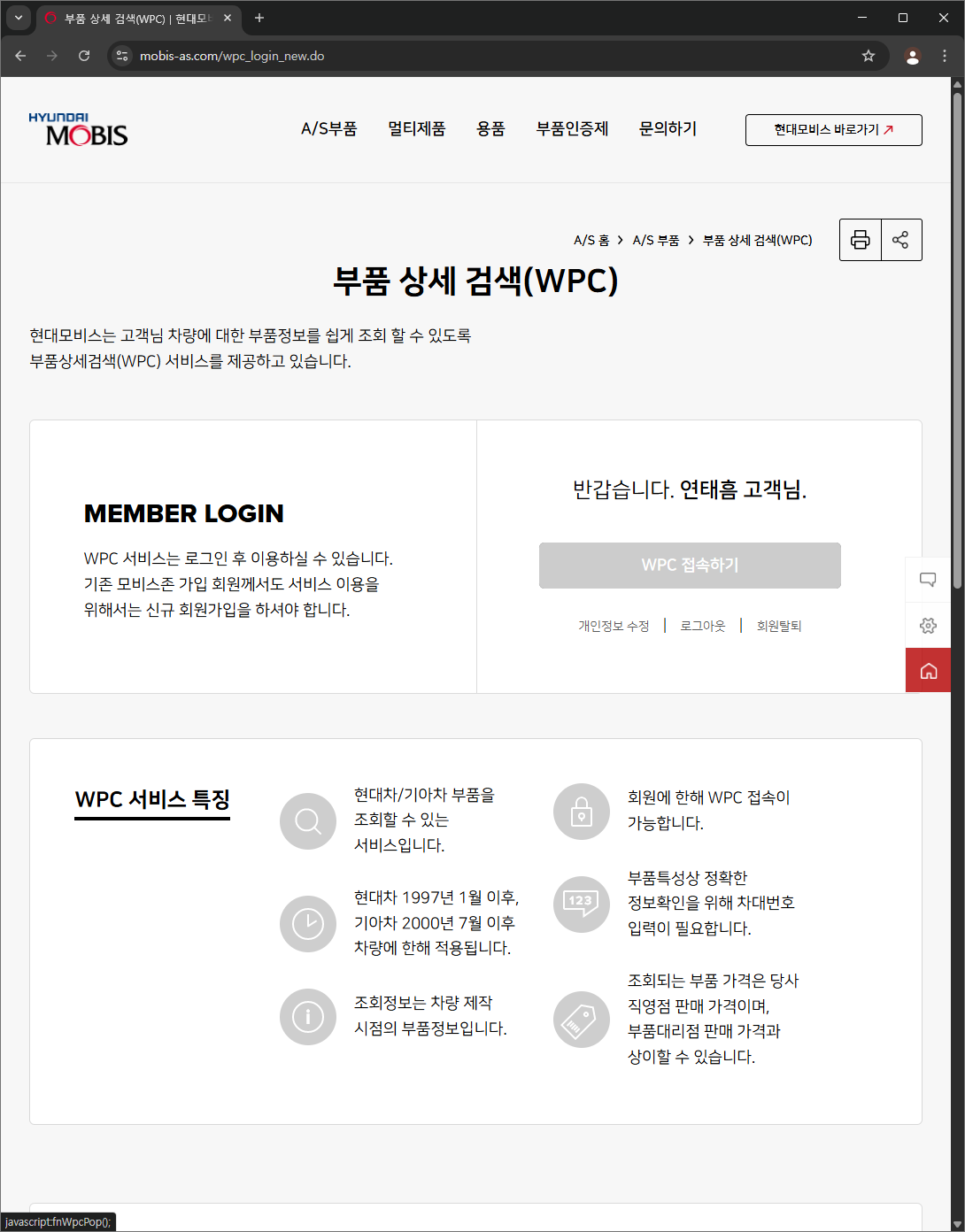 로그인 후에는 WPC 접속하기 클릭해 주세요.