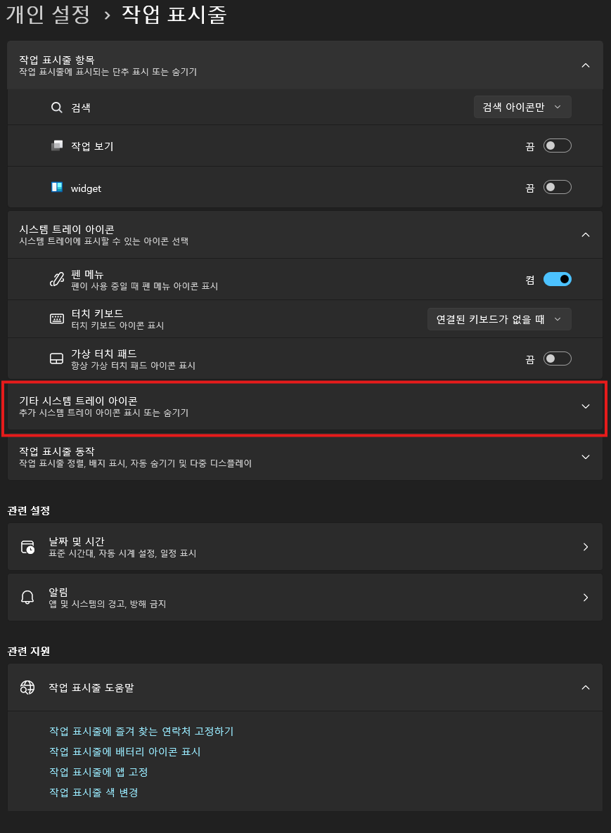 기타 시스템 트레이 아이콘을 선택해 주세요.