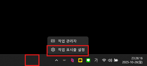 그다음 작업 표시줄 설정에 들어가 주세요.