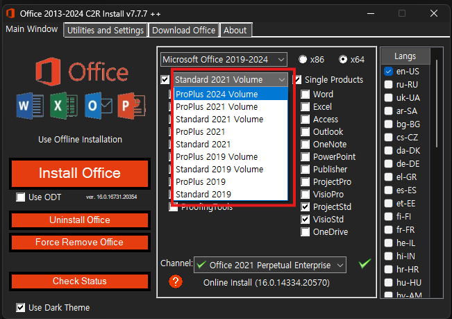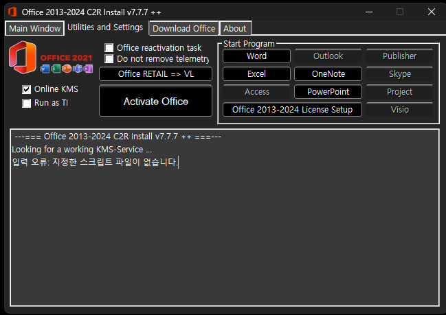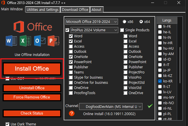 Office Installer, KMSAuto, KMSoffline, PIDKey Lite, Office 2013-2021 C2R Install + Lite 등등