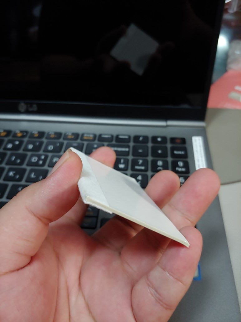 2번 액정필름을 다시 손으로 잡아당기면 부착은 끝입니다.