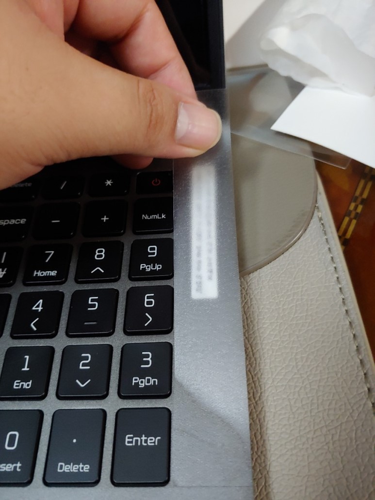 기존의 필름을 제거하고 솜으로 닦아줍니다.