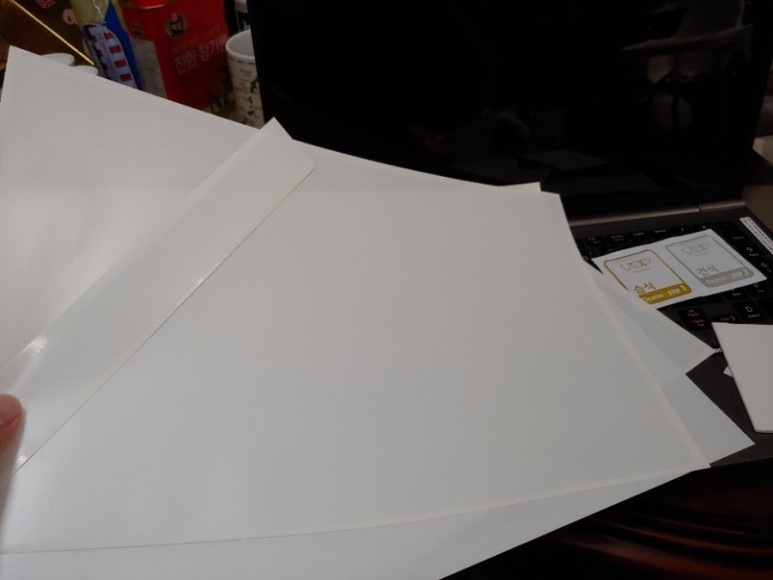 이번에는 흰색 종이 부분을 뛰어낸 뒤 부착하기 시작합니다.