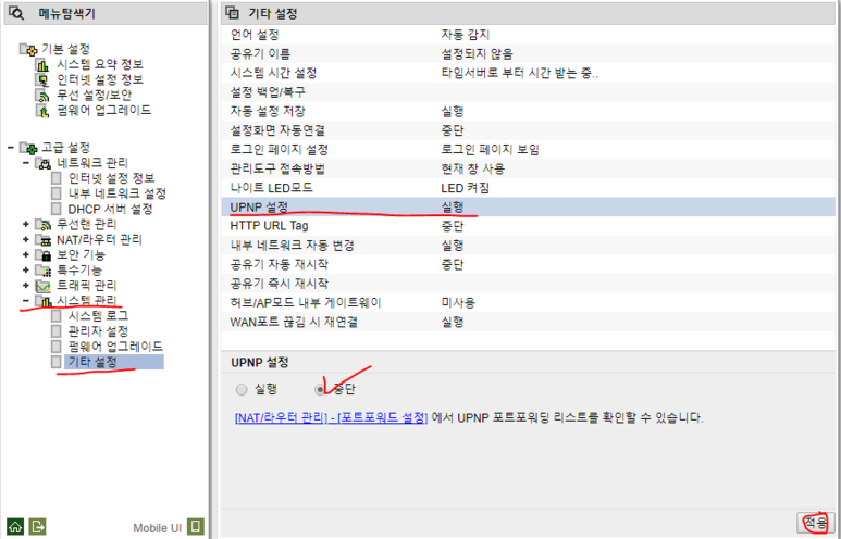 UPNP 설정을 중단해주세요.