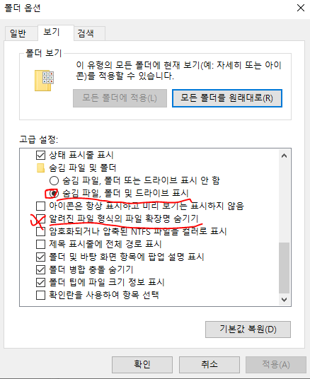 윈도우를 쓰다 보면 가끔씩 숨긴 파일이나 확장명을 알아야 할 때 있습니다.