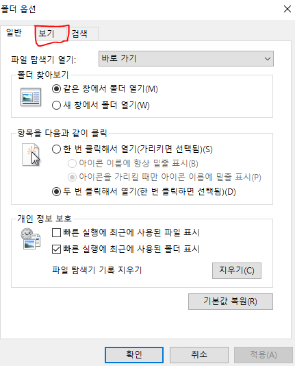 폴더 및 검색 옵션 변경이라고 있습니다.