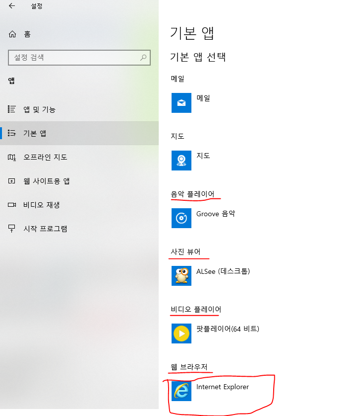 윈도우 8 때부터 기본 앱 변경이 위치가 변경되여 한참 찾은 적이 있습니다.