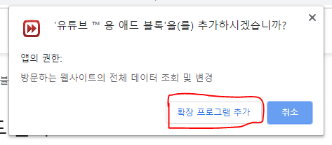 그럼 첫번째 유튜브용 애드 블록이있습니다.
